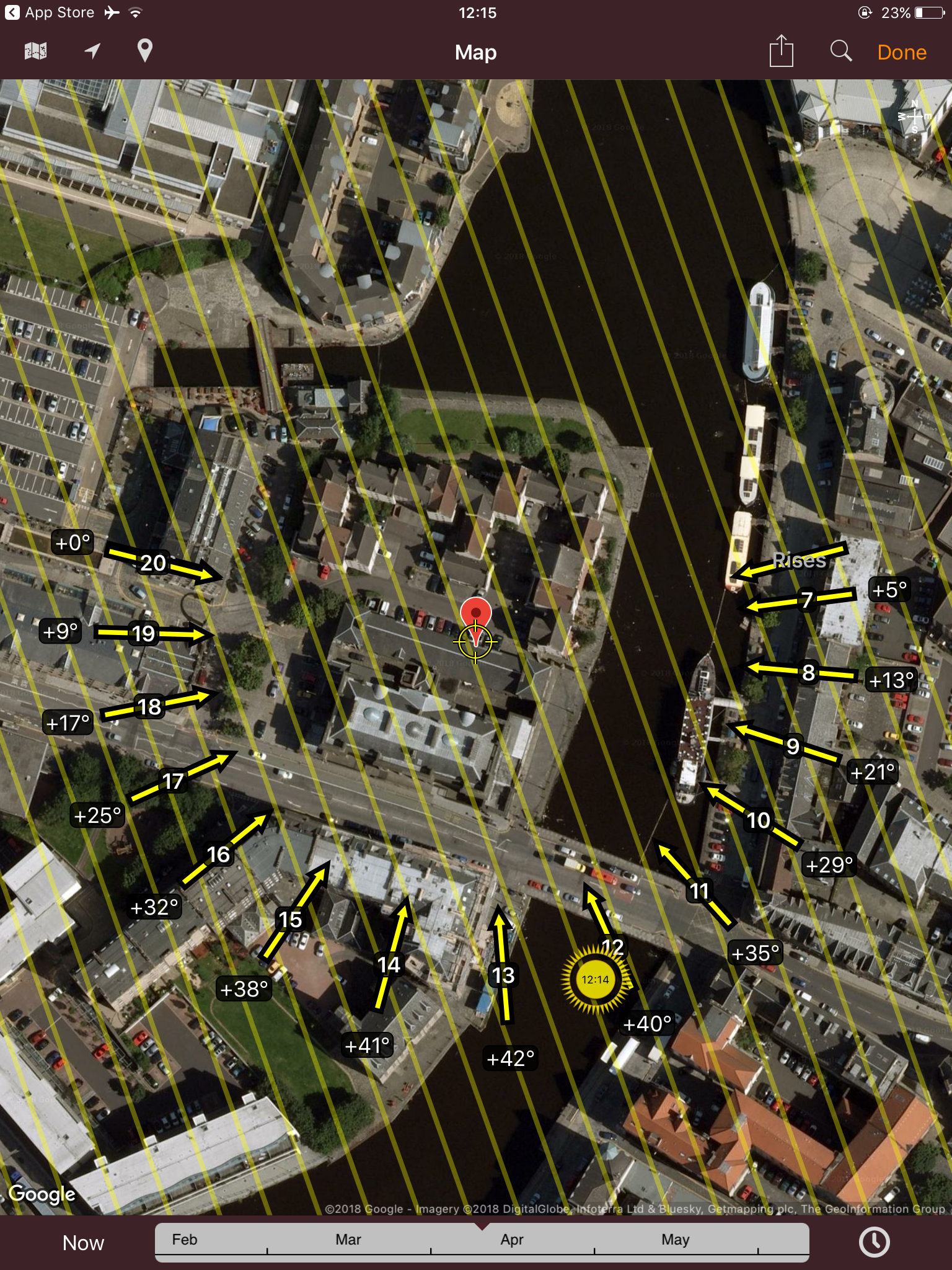 The application is compatible with IOS and Android so it can be easily downloaded to most smartphones and tablets. It provides a 3D augmented reality camera and map so you can view the solar path for each daylight hour and also shows you the hour intervals. Not only this, but it allows you to view the winter and summer solstice paths, the time of sunrise and has a built in compass. The monthly sun paths are useful as they let us know what month in the year a specific part of a building in shadow is most likely to receive direct sunlight.